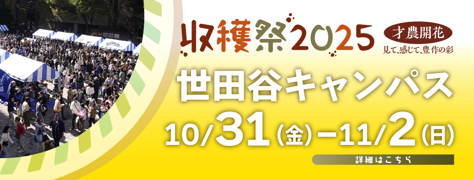 東京農大TV 本学に関する情報を動画で配信中 NODAI BRANDING MOVIE 「農」の進化に、挑み続ける。 Continually striving to advance agriculture オホーツクキャンパス紹介 一覧へ Course Navigator 学部紹介 農学部 植物や動物の生命に関する知識・技術について、基礎レベルから応用レベルまでを科学し、その成果を農学の発展につなげていくことをめざしています。 農学部 農学科 消費者のより健康で豊かな生活に資する農産物の安定生産のための理論を構築するとともに、それらを基にした技術を開発して、農業の発展に資することを目的としている。そのために、農作物の特質、栽培技術等の学理を追求することを通して、持続可能な次世代型農業の創造に貢献できる教育・研究を行う。また、実学的な教育の実践ほか、課外活動への参加も推進することによって、国内はもとより世界の農業や、それを取り巻く広範囲な分野で羽ばたくことのできる人材を養成する。 動物科学科 動物の生命現象や機能の理解とその制御を追究する生命・制御分野と、動物の行動と生産性を追及する機能・生産分野の2 領域を包含し、これらの特性を活かした応用技術開発を目指す。課程を通じて生命の尊厳や倫理を学び、豊かな心を持ち、医・薬・理学の領域まで広がりを見せる生命科学関連及び良質で安全な食料を生産する生産科学領域で活躍できる人材を養成する。※2018年4月 畜産学科より名称変更 生物資源開発学科 農業生態系のみならず、人類が将来にわたり安定した生活を維持するために不可欠な自然生態系に至る多様な生物を資源として捉え、その多様性に関する知識と理解を基礎として、様々な生物の生育・生息環境の保全を実践する技術と、生物資源の持続可能な利活用や開発に必要な技術を修得し、農学領域の諸課題の解決に寄与しうる能力を有した人材を養成する。※2018年4月 開設 デザイン農学科 生き物や食の機能性をヒントに、食料問題にとどまらず、環境問題や資源・エネルギー問題、そして少子高齢化に代表される人口問題など、私たちの間近に迫っている問題を解決し、持続的で快適な社会をデザインする。これが「デザイン農学」です。※2018年4月 開設 バイオセラピー学科 動物や植物の存在は、私たちの生存の基盤であるだけでなく、生活に潤いや、やすらぎを与えています。環境・医療・福祉などの場においても動植物の恩恵を受ける機会が増えています。このような人と生き物のかかわりを多面的に研究し、より良い共生社会と、生き物の新たな活用方法の構築をめざしています。※2018年度より募集停止 応用生物科学部 農学の知識と知恵を食品・発酵・健康・環境・エネルギー分野に広く応用し、国際的視野に立って実社会での活躍をめざす意欲の高い人の入学を求めています。 応用生物科学部 農芸化学科 農芸化学科では、生物現象の解明や環境問題の解決に化学的視点から取り組み、未来につながる持続可能な社会システムや、より豊かな生活の実現をめざしています。そのため、現代の高度に細分化された生物・化学の専門知識を横断的に学び、生命活動に関わる化学反応を深く理解することで、それを制御・応用する技術を構築する能力を養います。※2018年4月 生物応用化学科より名称変更 醸造科学科 酒や味噌、醤油、酢などの伝統的な発酵食品は、微生物がもつ発酵の力を利用してつくられています。さらに近年、この微生物の機能は環境の浄化やエネルギー開発の世界でも広く応用されようとしています。小さな微生物が、人々を大きな未来に導いているのです。 食品安全健康学科 食の流通のグローバル化によって、市場には新たな食材や加工食品があふれ、人々は豊かな食文化を楽しむ一方で、在来・外来の食材が食の安全を脅かす危険から自分たちを守る必要が生じています。こうした「食の安全・安心」をはじめ「食の機能と健康」を科学的に解明する研究拠点に、社会の期待が高まっています。 栄養科学科 「管理栄養士」は傷病者の療養や、乳幼児をはじめ高齢者、スポーツ選手など、様々な人々の健康づくりのため、高度な専門的知識及び技術を要する栄養の指導および、学校や病院、事業所などの給食管理をおこないます。「管理栄養士」によるヒューマンサービスが今最も求められています。 生命科学部 生命を調節する分子をデザインし、最小の生命である微生物の新機能を創製、植物育種や動物個体発生・脳機能といった高次生命機能解明まで、ミクロからマクロまでを統合的に捉える教育研究を行います。 生命科学部 バイオサイエンス学科 遺伝子は生命の設計図。最先端のバイオ技術を駆使して、遺伝子の働きを解き明かし、遺伝子の力を最大限に引き出すことで、人類が抱えている食料、健康、環境保全の諸問題の解決をめざします。ボーダーレスの時代である今こそ、農学の枠を超えて、医学、薬学、工学に至る応用にチャレンジする。これがバイオサイエンスです。 分子生命化学科 生物