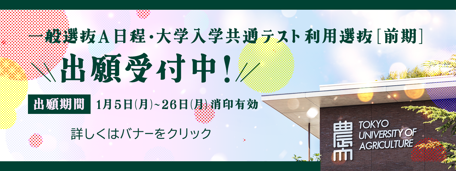 News Release ニュースリリース 教育学術 研究成果(共同)「大腸がん細胞の増殖を抑える可能性がある3つの植物由来成分を特定」 | 総合研究所 大塚 蔵嵩 客員教授 2026.3.3 お知らせ 3/6 法人創立記念日に伴う休業のお知らせ 2026.3.3 お知らせ 3/7 10:00-16:00 本厚木ミロードで「農大フェスティバル」開催のお知らせ 2026.3.3 学生活動 デザイン農学科 食機能科学研究室の学生たちが考案したレシピが「令和7年度 青森りんごオリジナルレシピコンテスト」で各賞を受賞 2026.3.2 メディア 3/2 15:25-15:40 国際農業開発学科 小塩 海平 教授がJ-WAVE「MIDDAY LOUNGE」に出演 2026.2.27 受験生 2026年度一般選抜B日程・共通テスト利用選抜後期 志願者確定 2026.2.27 メディア 農芸化学科 辻井 良政 教授がYouTubeチャンネル「ゲームさんぽ/よそ見」に出演、『天穂のサクナヒメ~ヒヌカ巡霊譚~』をプレーしながら稲作を解説 2026.2.26 お知らせ 2/27 13:30-17:00 「食と農」の博物館館長 前橋 健二 教授(醸造科学科)が、文化庁主催「100年フード・食文化ミュージアムサミット」に登壇 2026.2.26 お知らせ 2026年度新入学生(編入・転入・学士編入学生含む)のうち「入学前の既修得単位の認定」の申請を希望する方へ 2026.2.25 メディア 2/27 19:57-20:422/28 8:15-9:00 国際食農科学科 宮浦 理恵 教授が、NHK「チコちゃんに叱られる! 」に出演 2026.2.25 学生活動 2/26-3/1 農友会 写真部、「CP+2026」出展のお知らせ 2026.2.24 学生活動 農友会硬式野球部、農友会準硬式野球部らの学生が「世田谷公園スポーツフェスタ」の運営に協力 2026.2.20 一覧へ