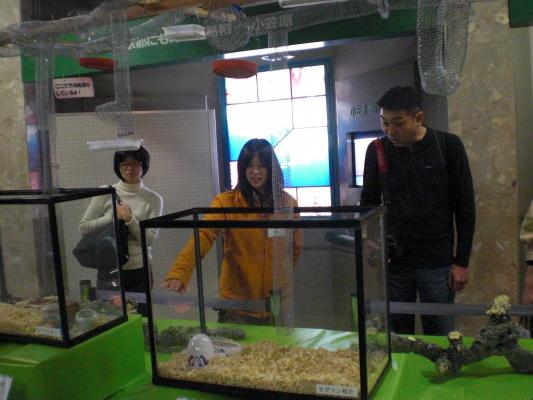 まず研究室の思い出と言ったら、収穫祭とわが野生動物学研究室の特色が出ている分野別実習・演習だと思います。3年次の収穫祭に、文化学術展といった自分たちが行っている研究を伝える展示を行うのですが、一丸となって作業を行うことは想像していた以上にとても大変で、それゆえ完成したこと、沢山のお客さんが展示を見て反応してくれることに喜びも一入でした。次に、分野別実習・演習ですが、研究室で主に研究している哺乳類や鳥類だけではなく磯の生き物とふれ合ったり、様々な調査技術また標本作製と幅広く学ぶことでジェネラリストな視点を身につけることができ、その土台があったからこそ、大学生活4年間の集大成となる卒業研究に取り組むことができました。他にも、研修旅行や先生や仲間との日々の生活と多くの思い出がありますが、興味がある方は、是非是非研究室に遊びに来て聞いて下さいね。