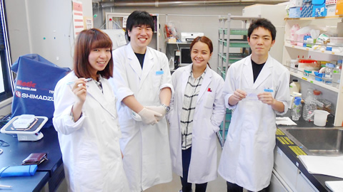 応用微生物学研究室はユニークな人が多いといわれている研究室なので、毎日が刺激的です!そんなメンバーで、毎日和気あいあいと楽しい研究室生活を送っています。
