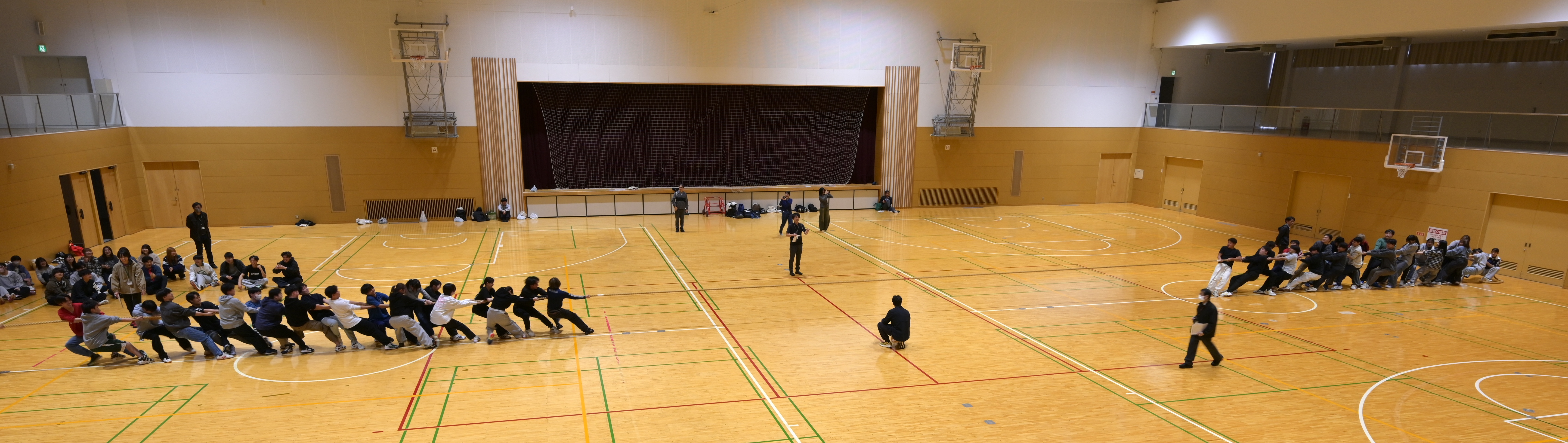 続いて行われたゼミ対抗の綱引きでは、仲間同士で声を掛け合いながら力いっぱい綱を引く姿が見られ、大いに盛り上がりました。