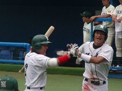 5番 南田 (3年 内野手) 7番 対馬(写真左) 4番 水島(写真右)