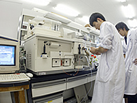 とはいえ彼らは非常に小さいため、1匹を調べてもよくわかりません。そこで特殊な装置で微生物を大量培養するのが本研究室の特徴です。微生物は分裂スピードが速く、50リットルのタンクに1匹入れると1日でタンクいっぱいに増えます。そこから得られる微生物は約200グラム。1000倍に拡大した顕微鏡でようやく見えるほどの1匹の微生物が、手で触れられるようになるのです。このように、ミクロの世界で見ていたものを何億倍ものスケールに拡大して見ると、これまでに見つかっていなかった貴重なものが発見できるのです。 |