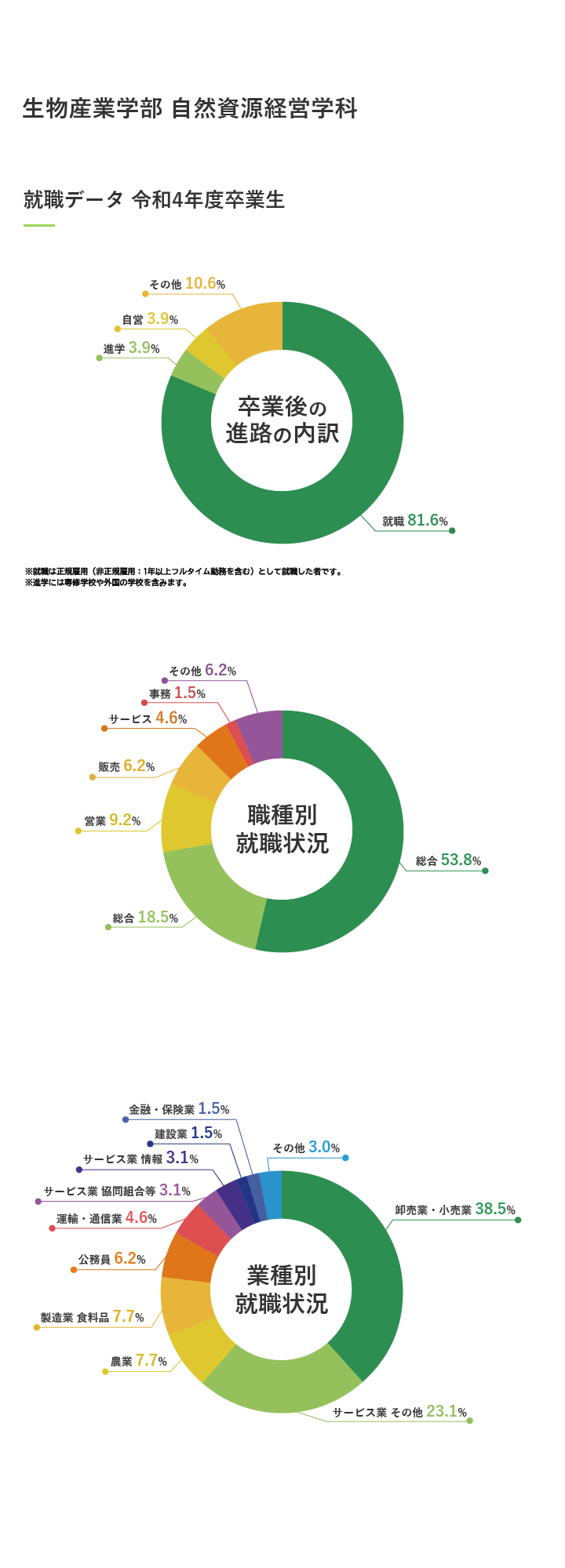 - 業種別就職状況のその他は