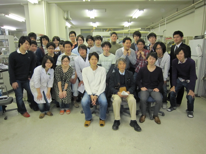 資源研は額田教授、矢島教授、勝田准教授のSTAFF3名で、卒論生、大学院生を指導しています。加えて分子生命化学科の尾中篤教授、石神健教授、斉藤竜男准教授が加わっています。STAFFは6名とも有機合成化学を専門としておりますので、STAFF全員で室員全員の指導をする体制です。大学院への進学をお勧めしております。写真はクリックで拡大します。