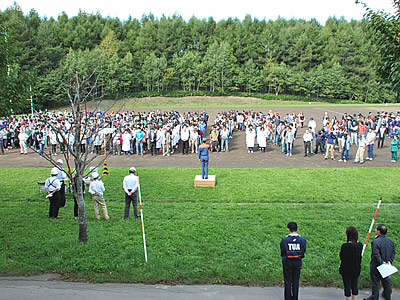 訓練は、各建物施設からの避難に要する時間や避難完了までの指示の流れ、非常放送設備の検証などを中心に行われました。非常放送設備に一部不具合があったものの避難に要した時間は13分で前回より短縮されていました。