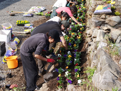 箱崎の仮設住宅地内でのコミュニティガーデンづくり