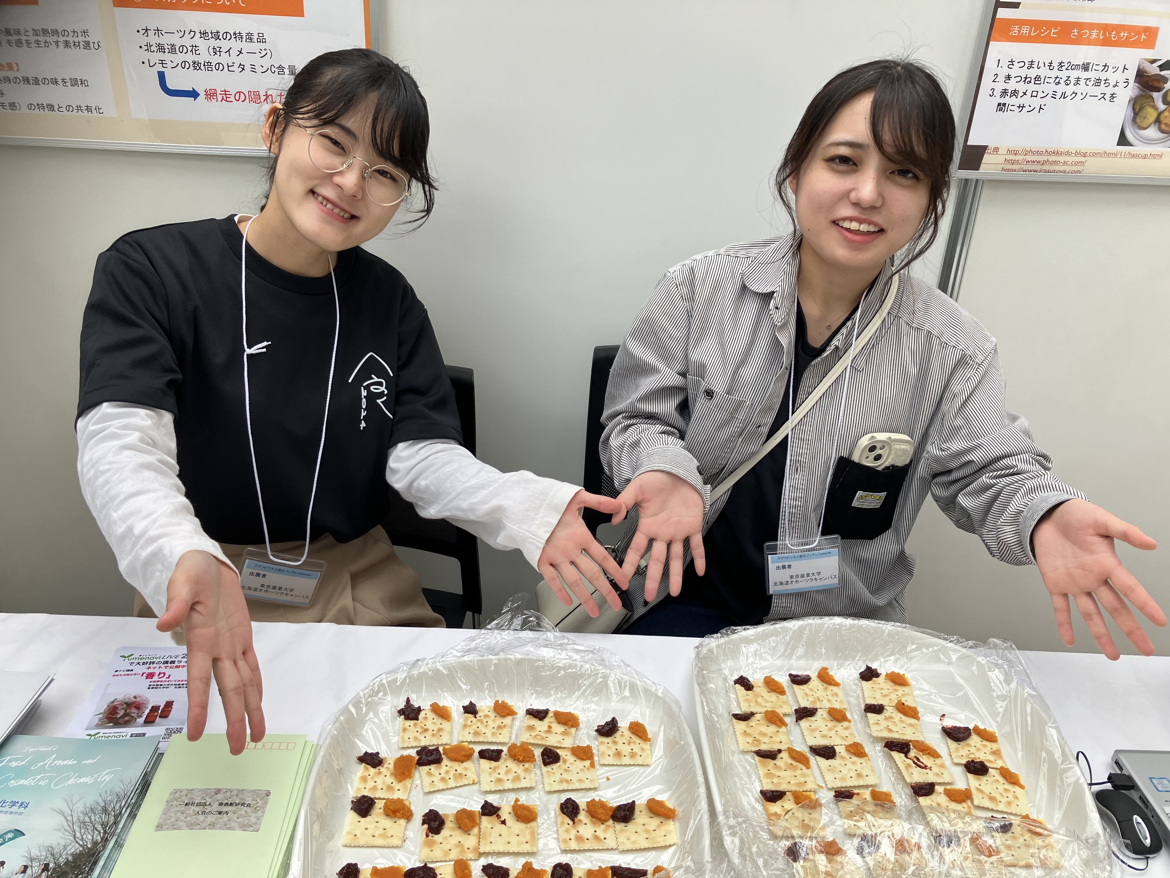 食香粧化学科 3年の中島 千咲希さん、増田 一花さん(ともに食の化学研究室)が11月8~9日、札幌市で開催された「2024アグリビジネス創出フェア in Hokkaido」に出展し、投票審査により優秀賞を受賞しました。