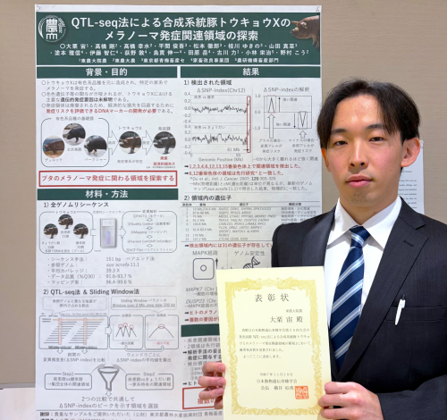 動物科学専攻 大栗 宙さんが「日本動物遺伝育種学会第26回大会」で優秀発表賞を受賞