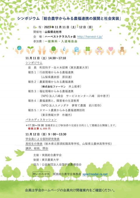 シンポジウム「総合農学からみる農福連携の展開と社会実装」(山梨県北杜市)のお知らせ