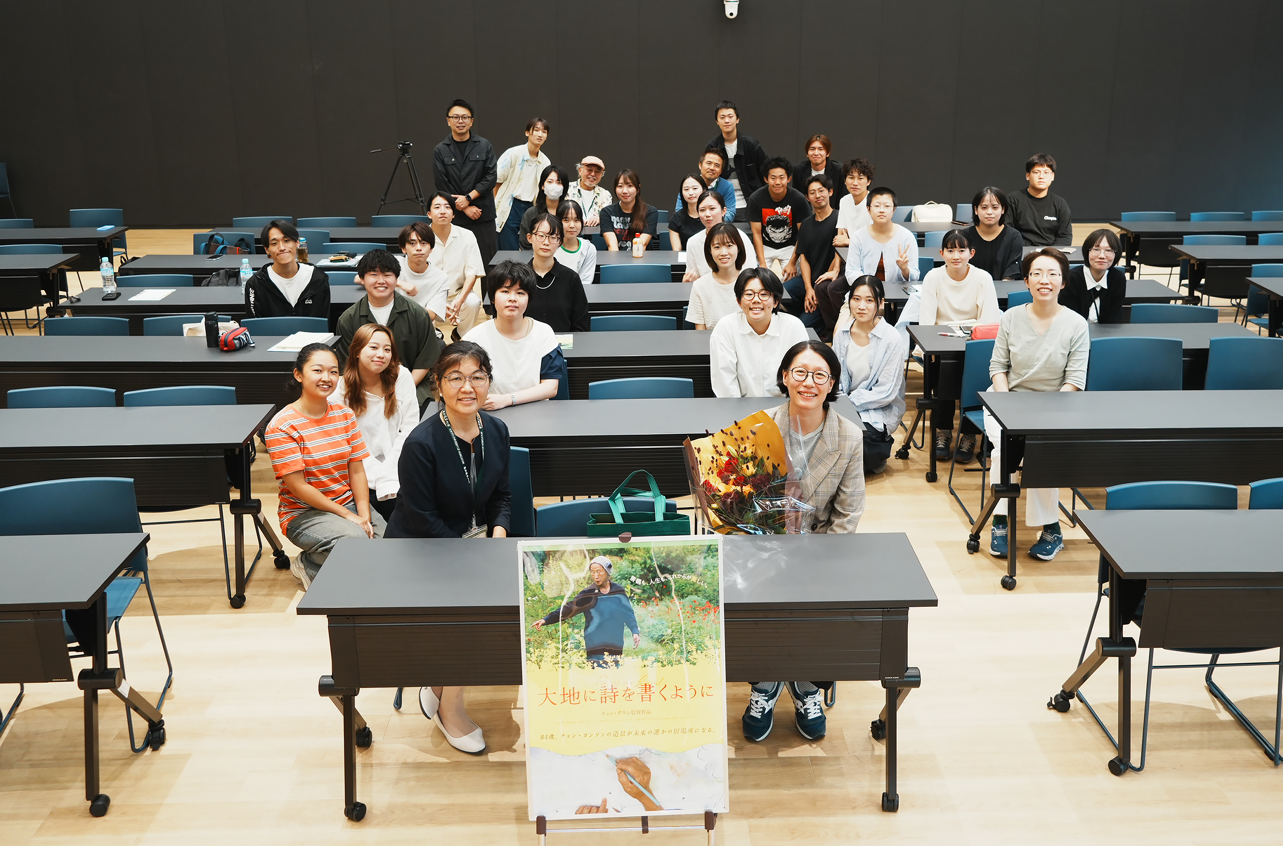 イベントは、造園科学科 水庭 千鶴子 学科長および株式会社スモモ 長岐 真裕さんによる挨拶から始まり、70人余りの東京農業大学の学生・教職員らが映画を鑑賞。