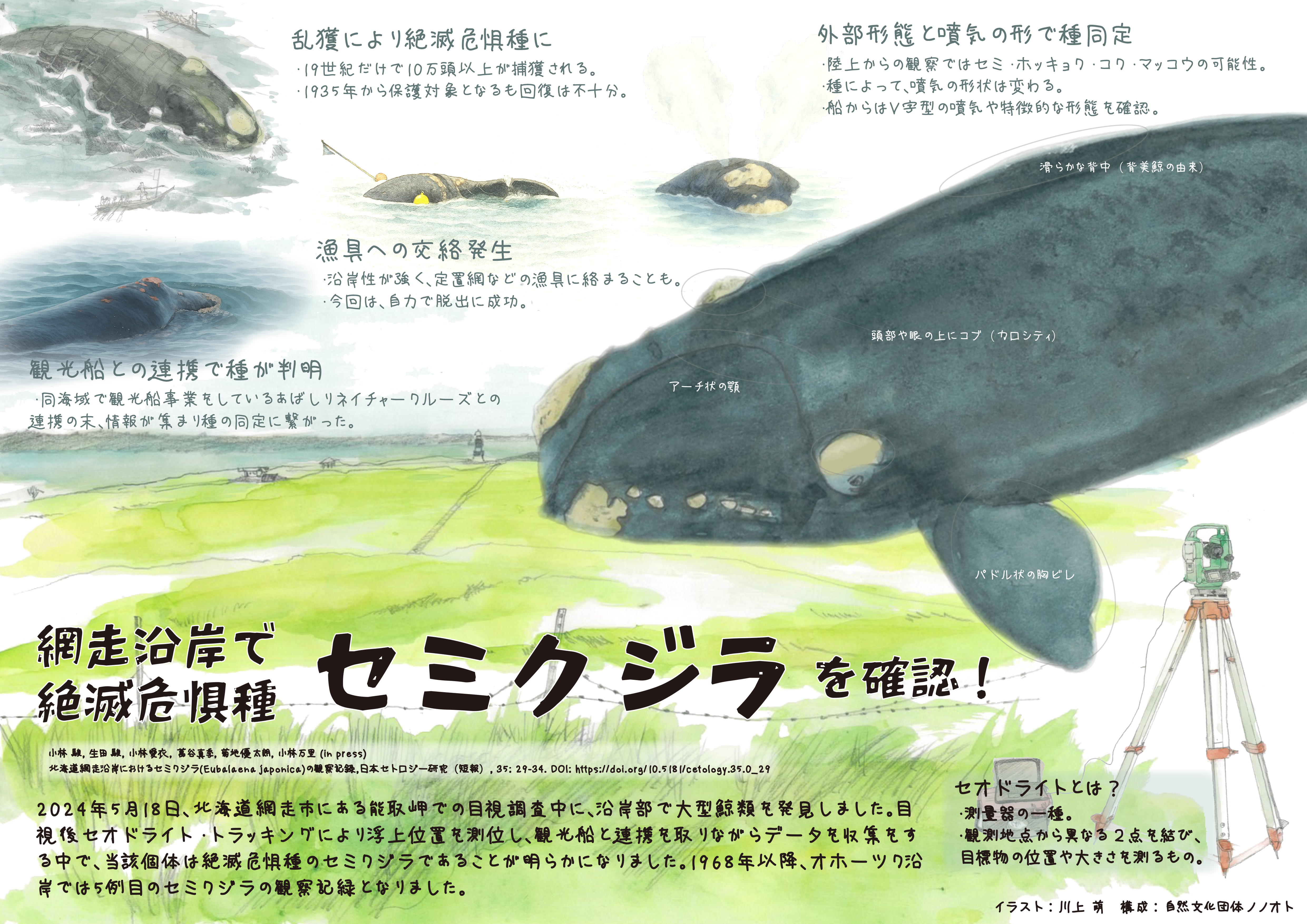 北海道網走沿岸におけるセミクジラ(Eubalaena japonica)の観察記録『日本セトロジー研究』35: 29–34.