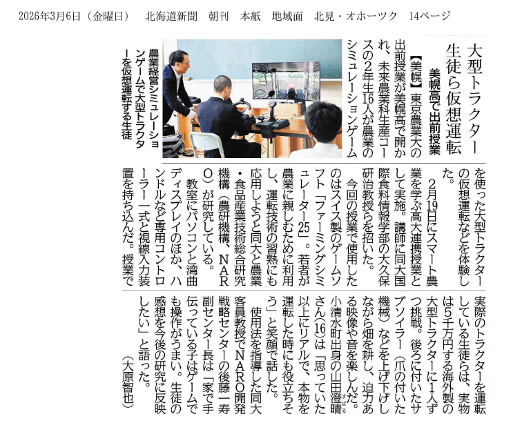 出張講義の様子は、2026年3月6日(金)の北海道新聞にも掲載されました。
