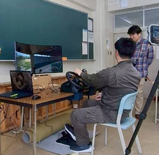 授業では、農業・食品産業技術総合研究機構と共同で研究している農業シミュレーションゲームを使用し、大型トラクターの仮想運転体験等を行いました。