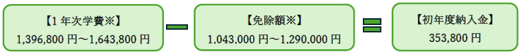 ・初年度納入金のうち、授業料・実験実習演習費・整備拡充費が免除され、初年度納入金は353,800円に!