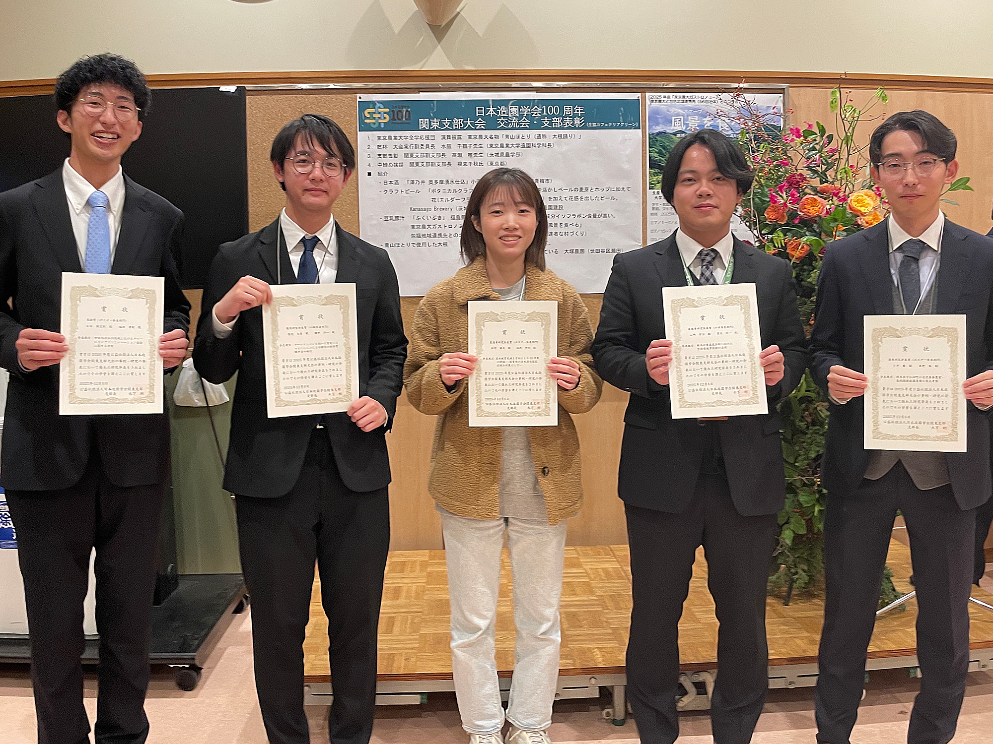 造園学専攻の学生5名が12月6~7日、東京農業大学 世田谷キャンパスで開催された「2025年度日本造園学会 100 周年記念関東支部大会」で各賞を受賞しました。
