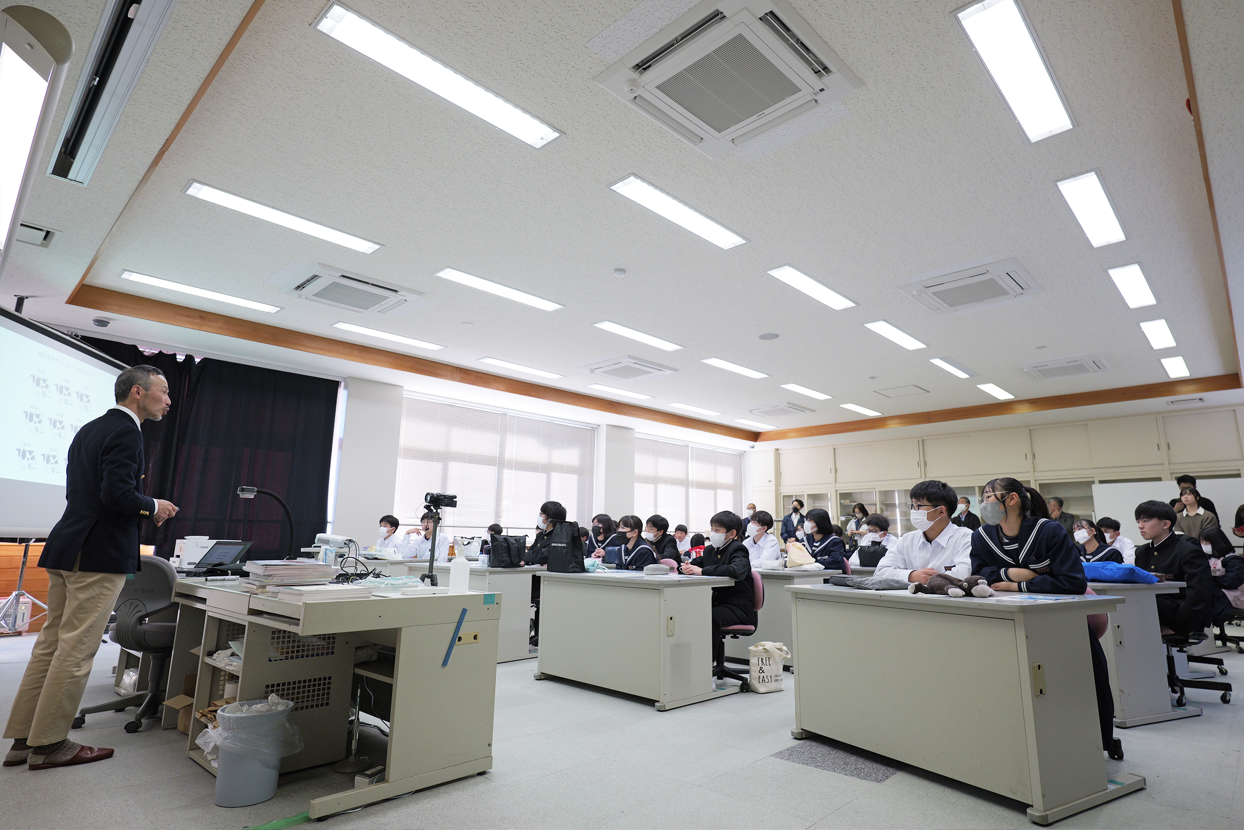 東京農業大学の教授・学生が、富士宮市立富士根北中学校で「A2ミルク」をテーマに食育