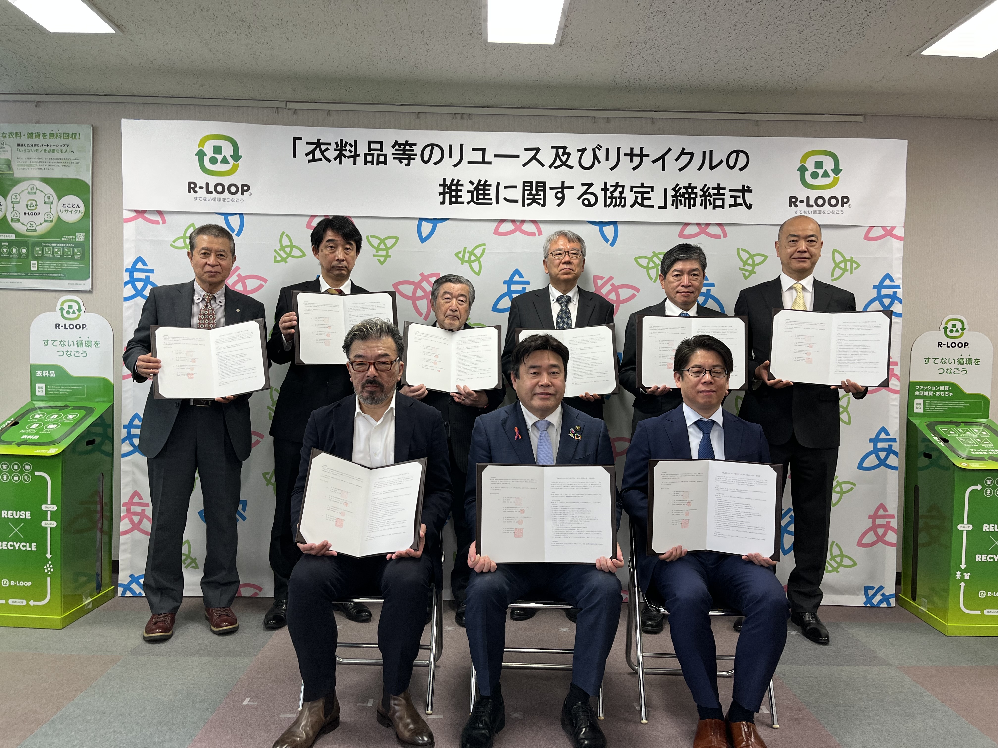 「衣料品等のリユース及びリサイクルの推進に関する協定」はブックオフコーポレーション株式会社と株式会社BPLabが共同運営する、不要になった衣料品等を回収し、「リユース(再利用)」と「リサイクル(再資源化)」を推進するサービス「R-LOOP(アール・ループ)」を推進して不要品の回収・再利用・リサイクルを促進することを目的としています。
