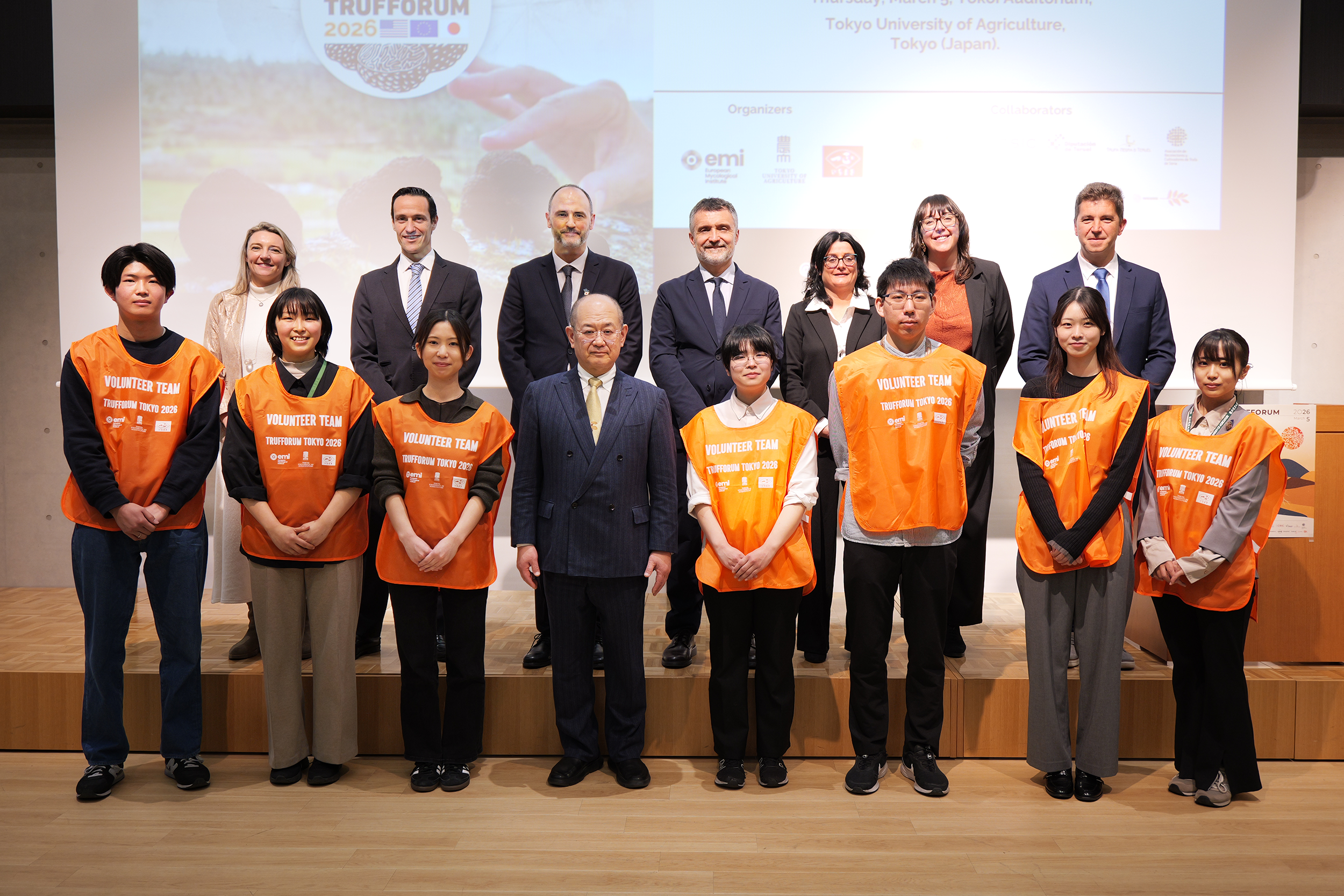 東京農業大学は3月5日(木)、世田谷キャンパスにて欧州菌学研究所(以下、EMI)、一正蒲鉾株式会社と共同で、ヨーロッパ産黒トリュフ(Tuber melanosporum)に関する国際会議「TRUFFORUM TOKYO(トリュフォーラム・トーキョー)2026」を開催しました。