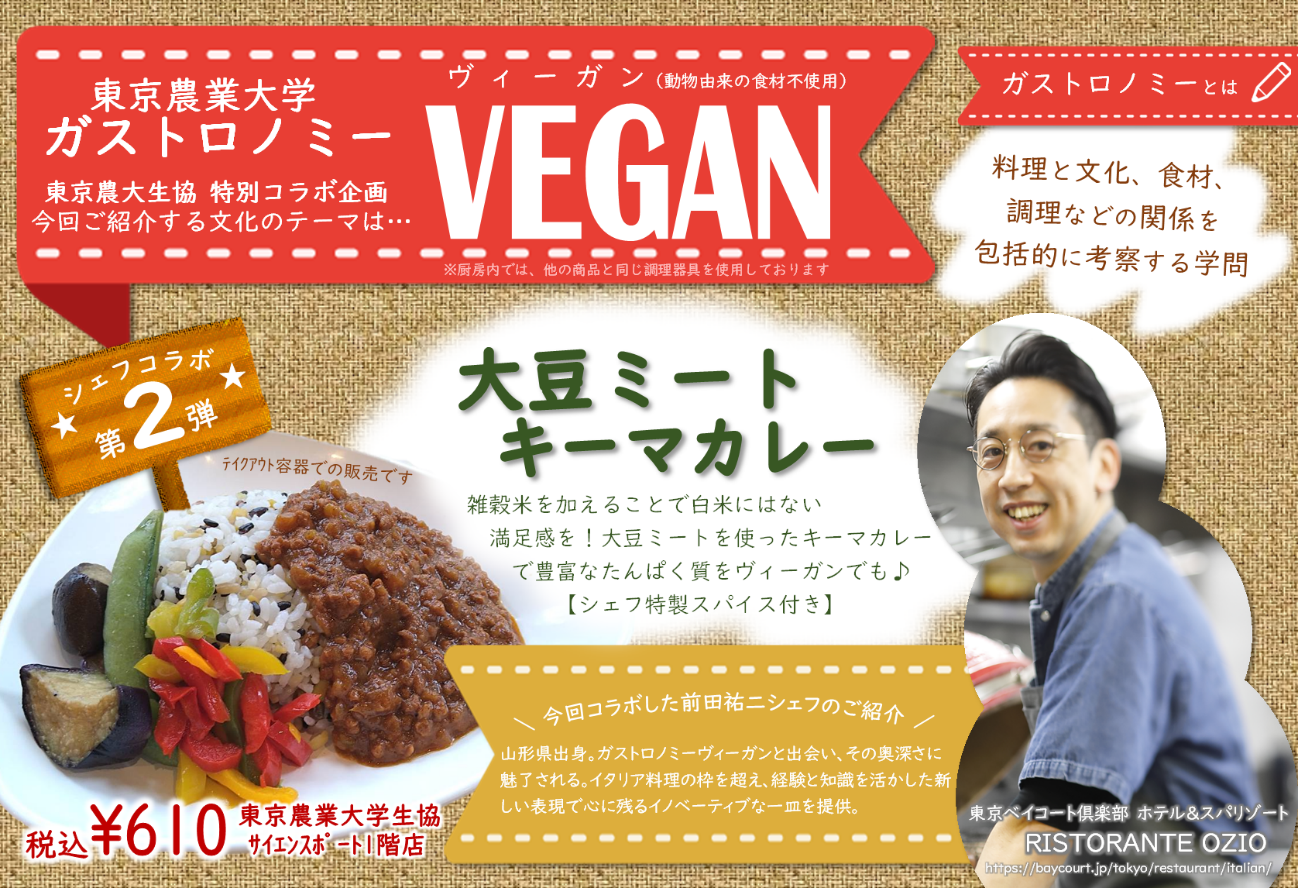 東京農業大学ガストロノミー:前田祐二シェフ×東京農大生協(世田谷キャンパス) 特別コラボ企画「ヴィーガン」メニュー第2弾